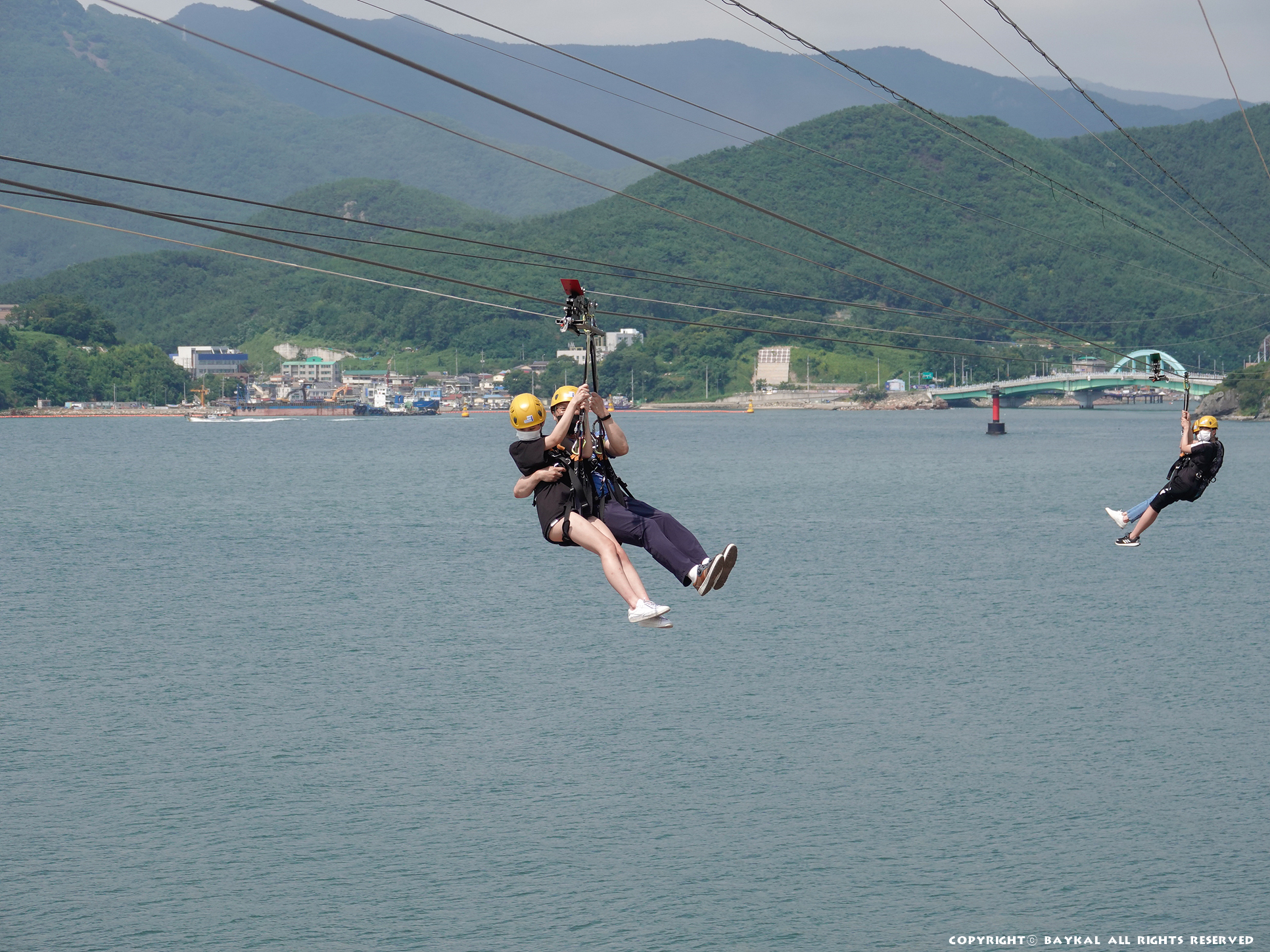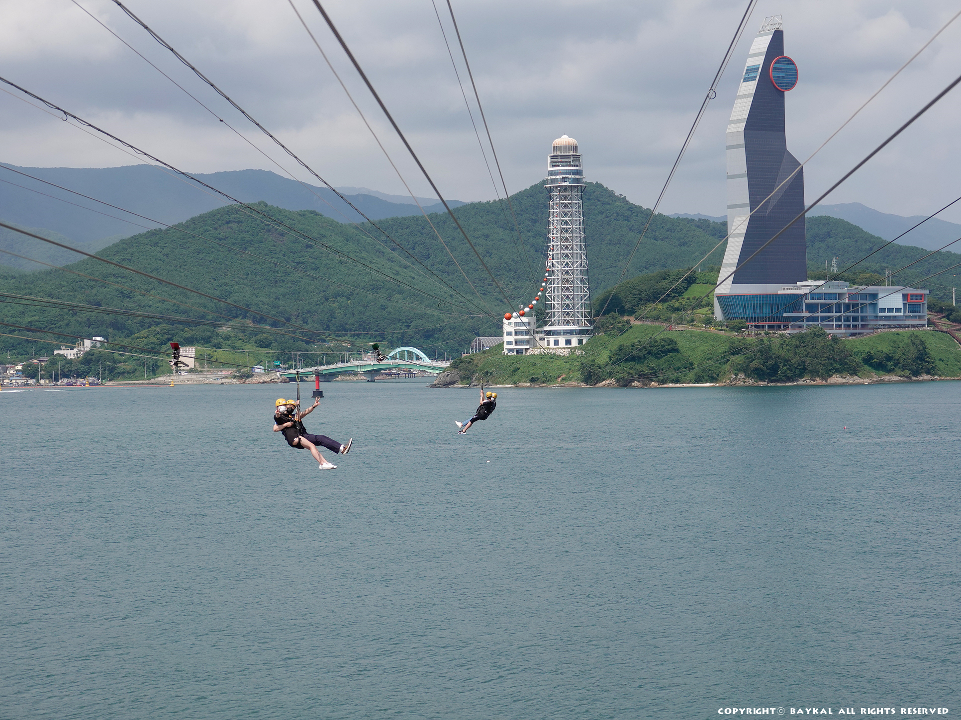 해양공원 99m 타워에서 소쿠리 섬까지 1,399m를 시속 80km 의 속도로 내려가는 짚트랙~