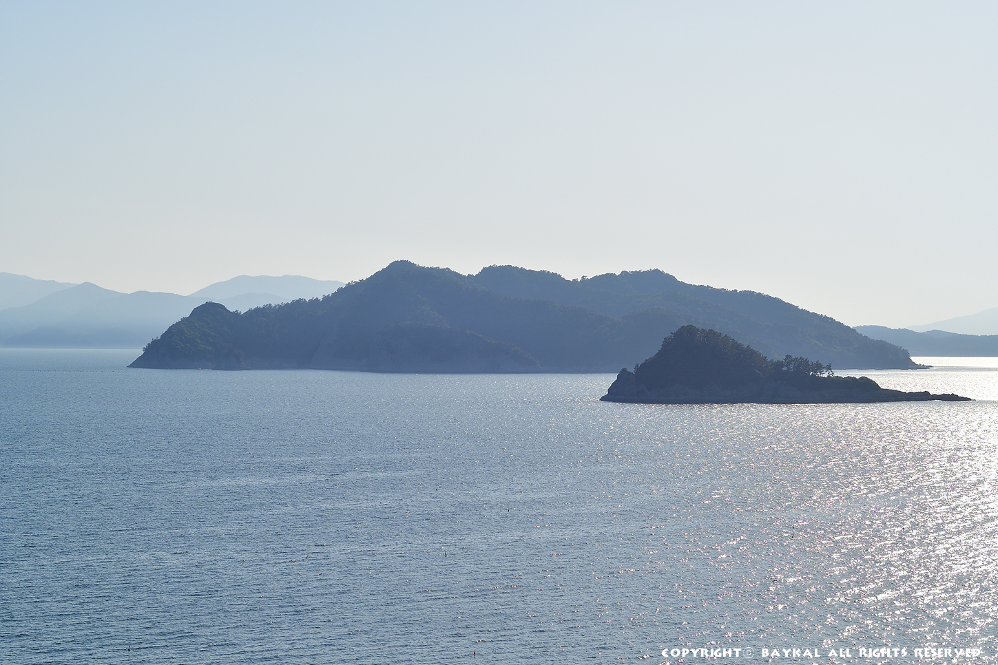 뒤에 보이는 섬이 사량도 윗섬 이다