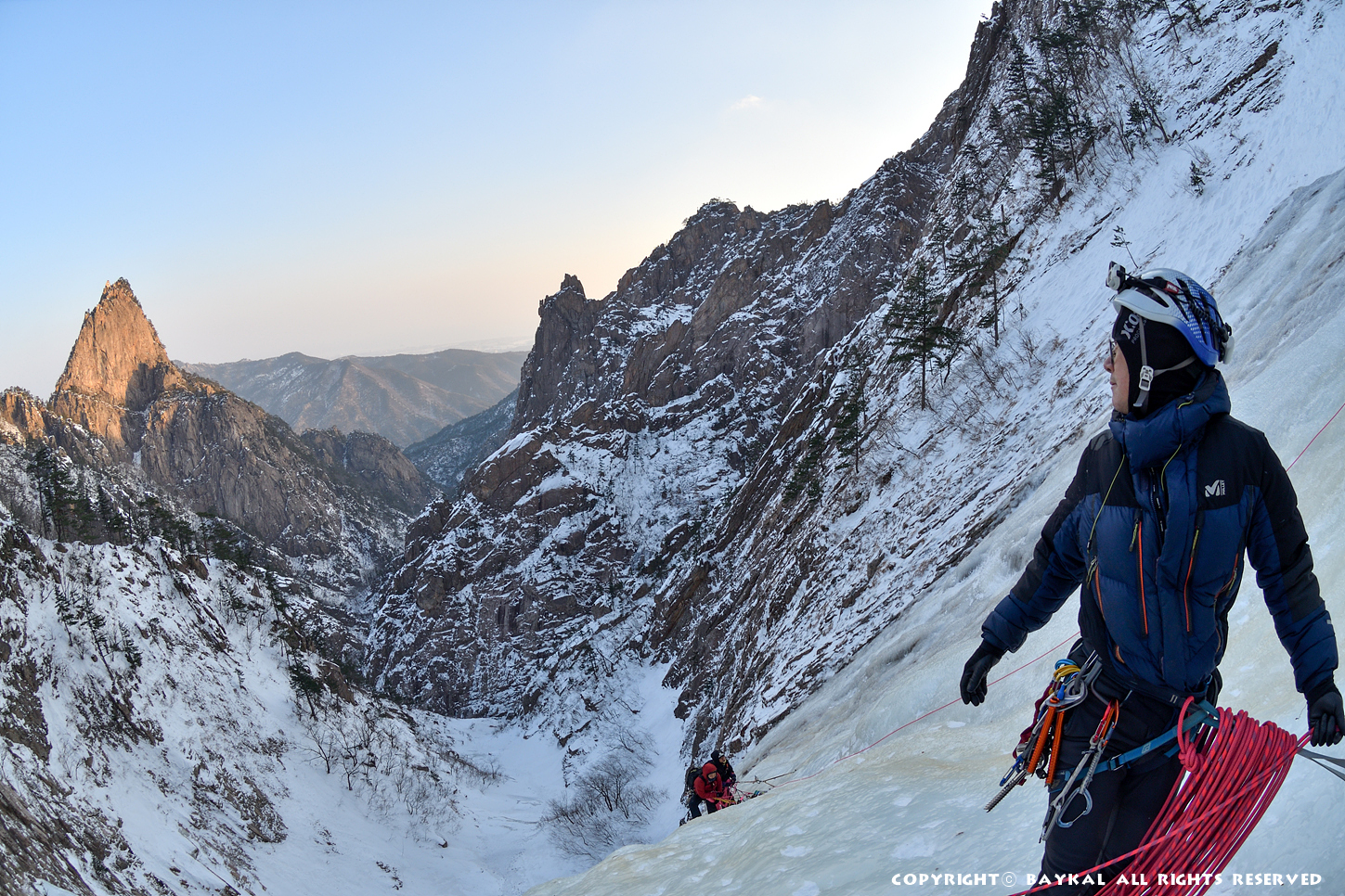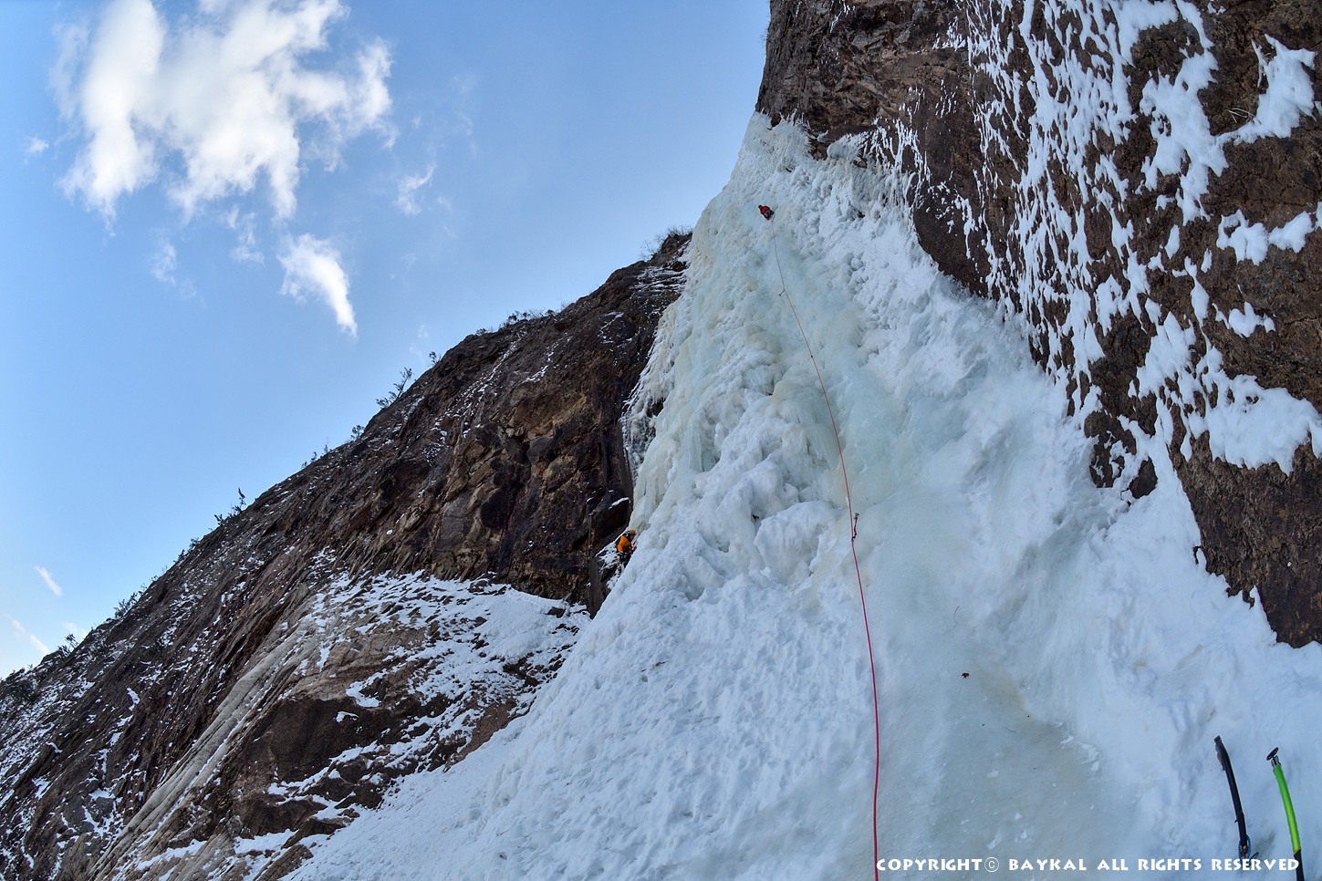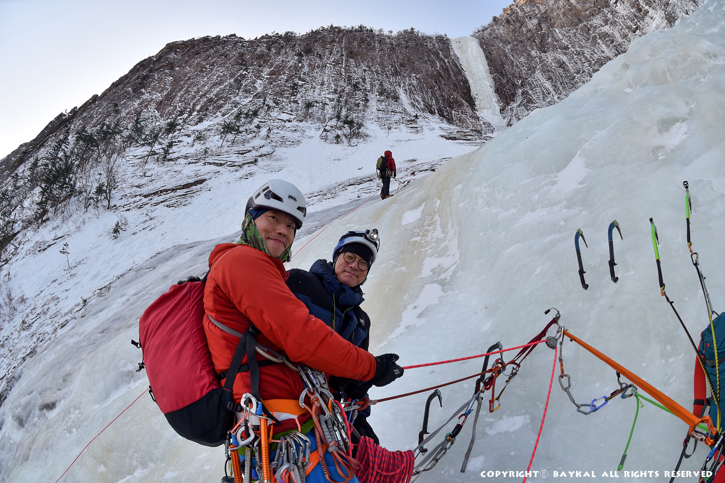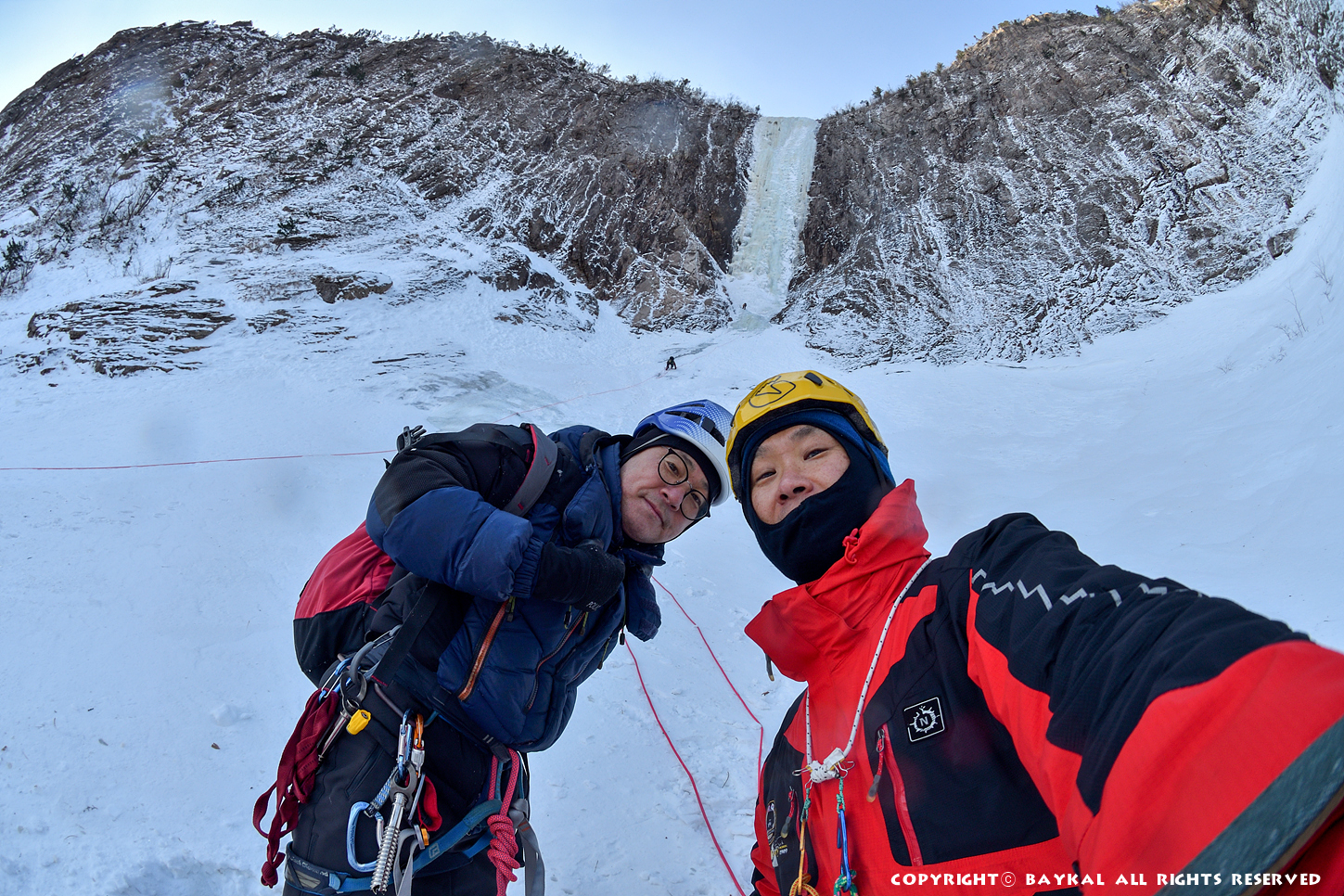 거대한 폭포 아래로 하얀설원이 펼쳐지는 곳에서 환상적인 등반을 ~ ^^