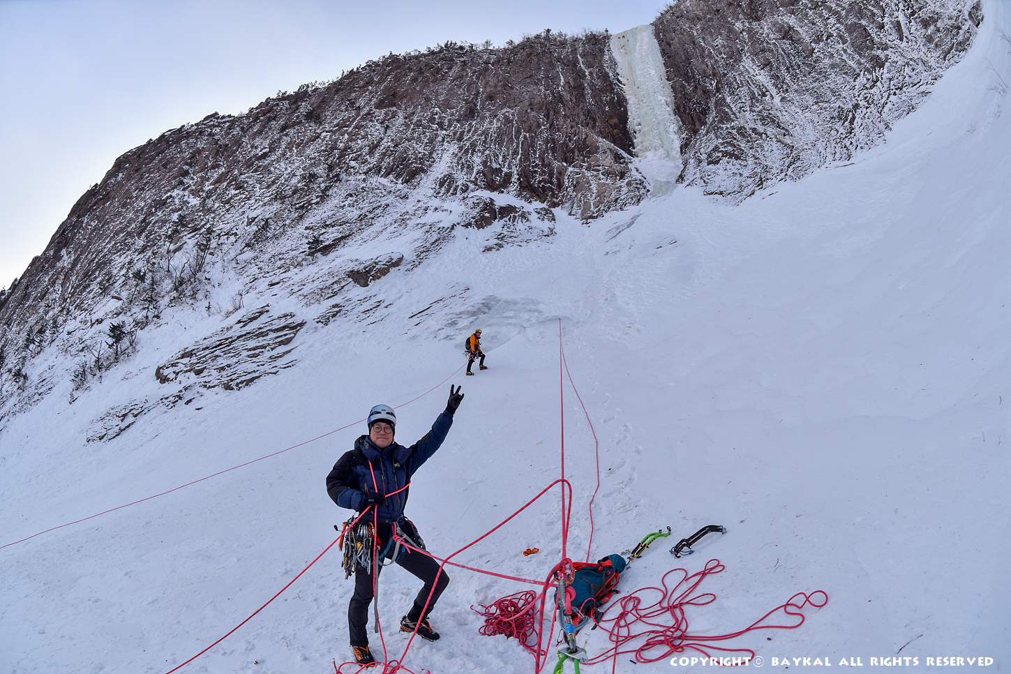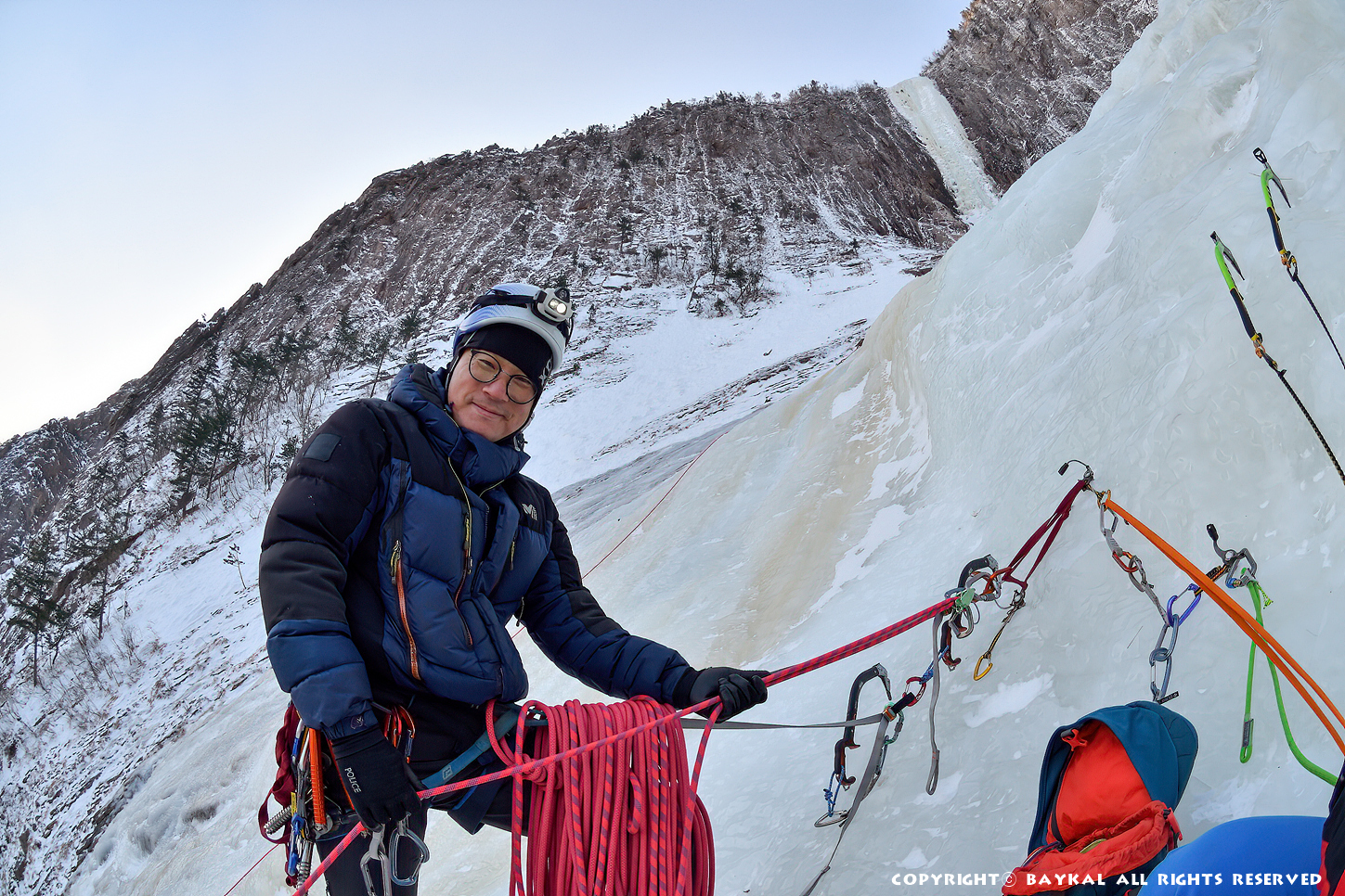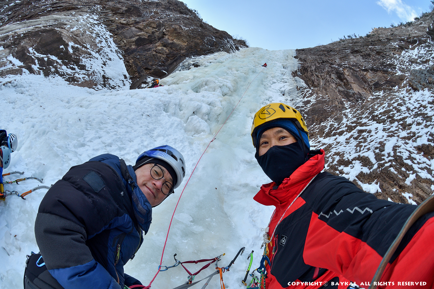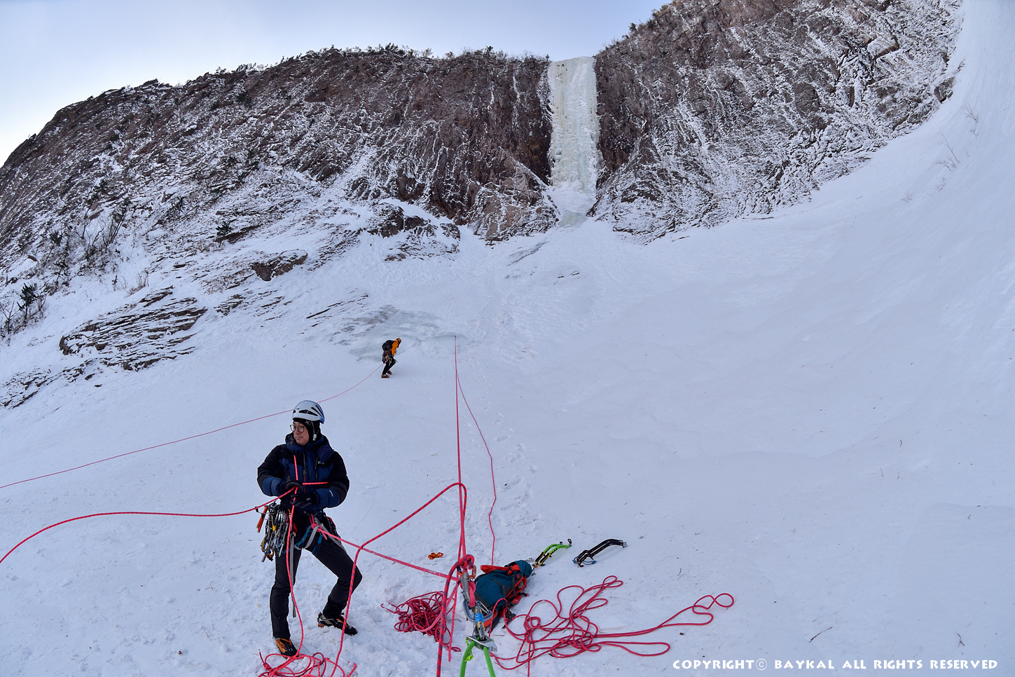 거대한 폭포 아래로 하얀설원이 펼쳐지는 곳에서 환상적인 등반을 ~ ^^