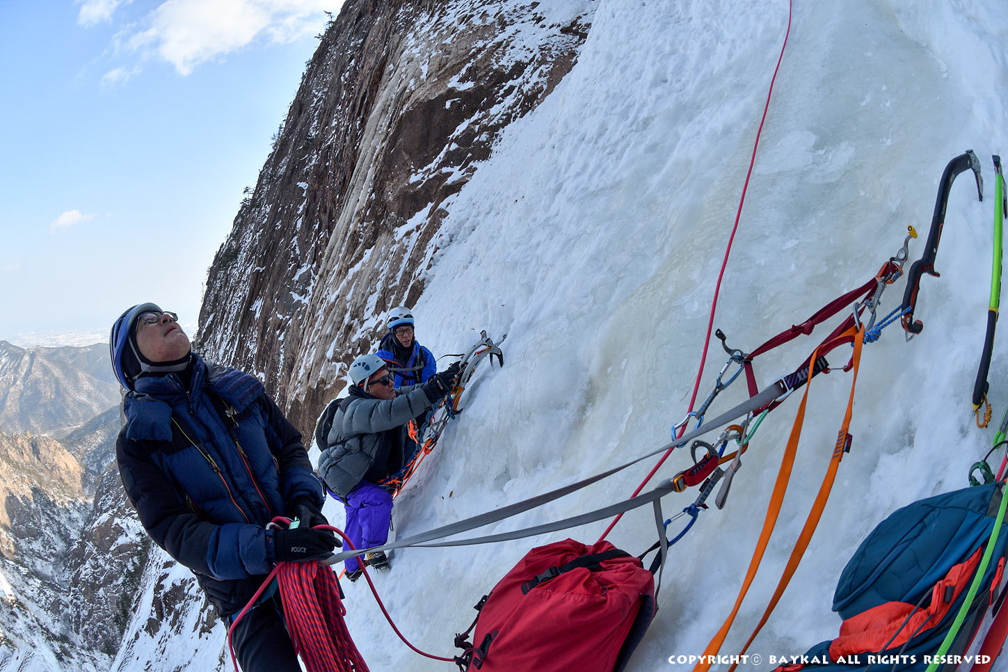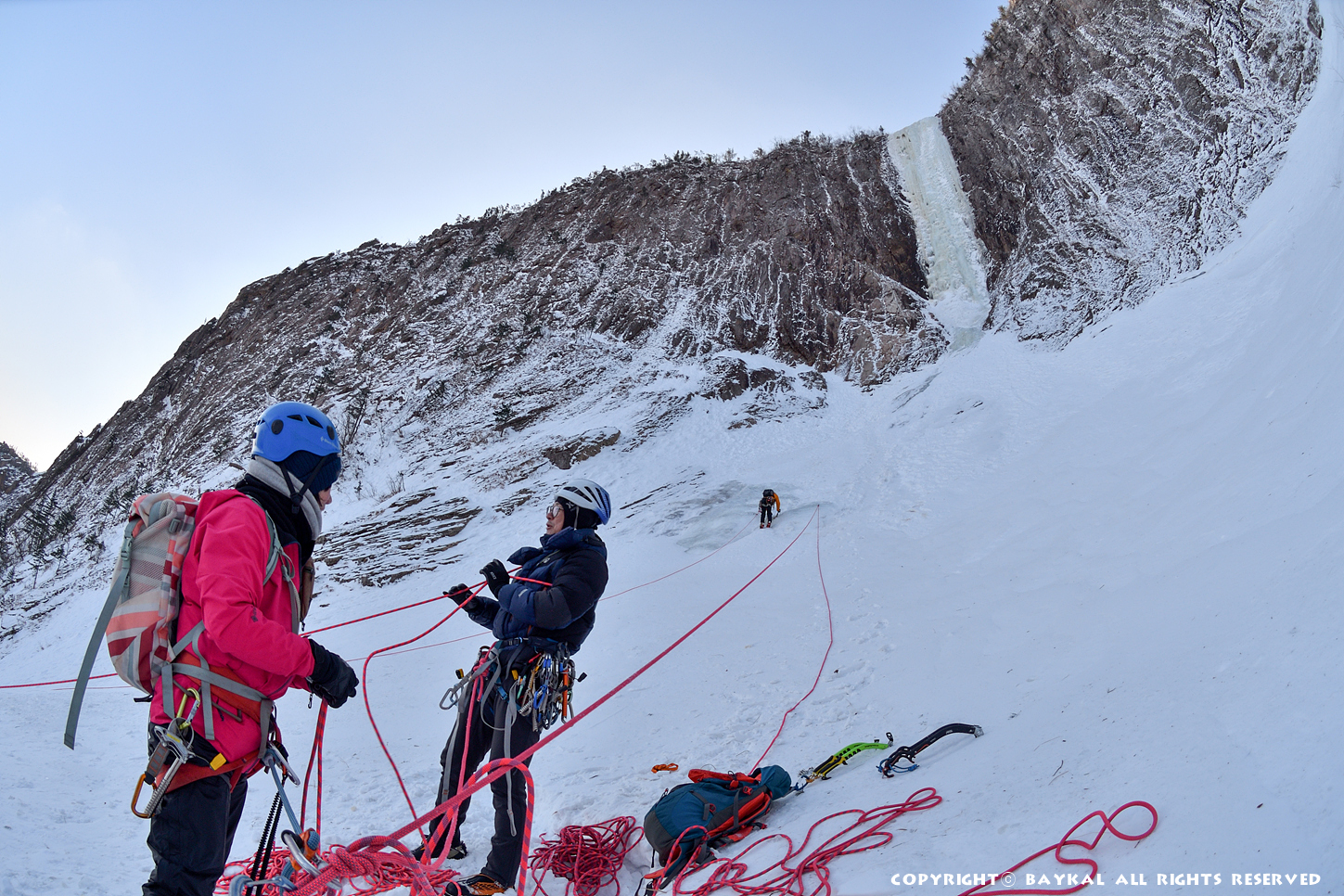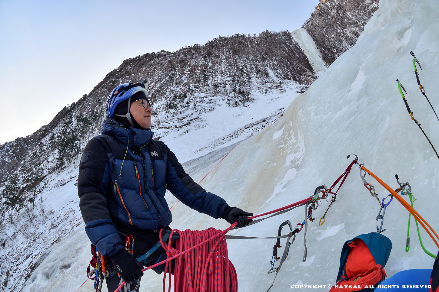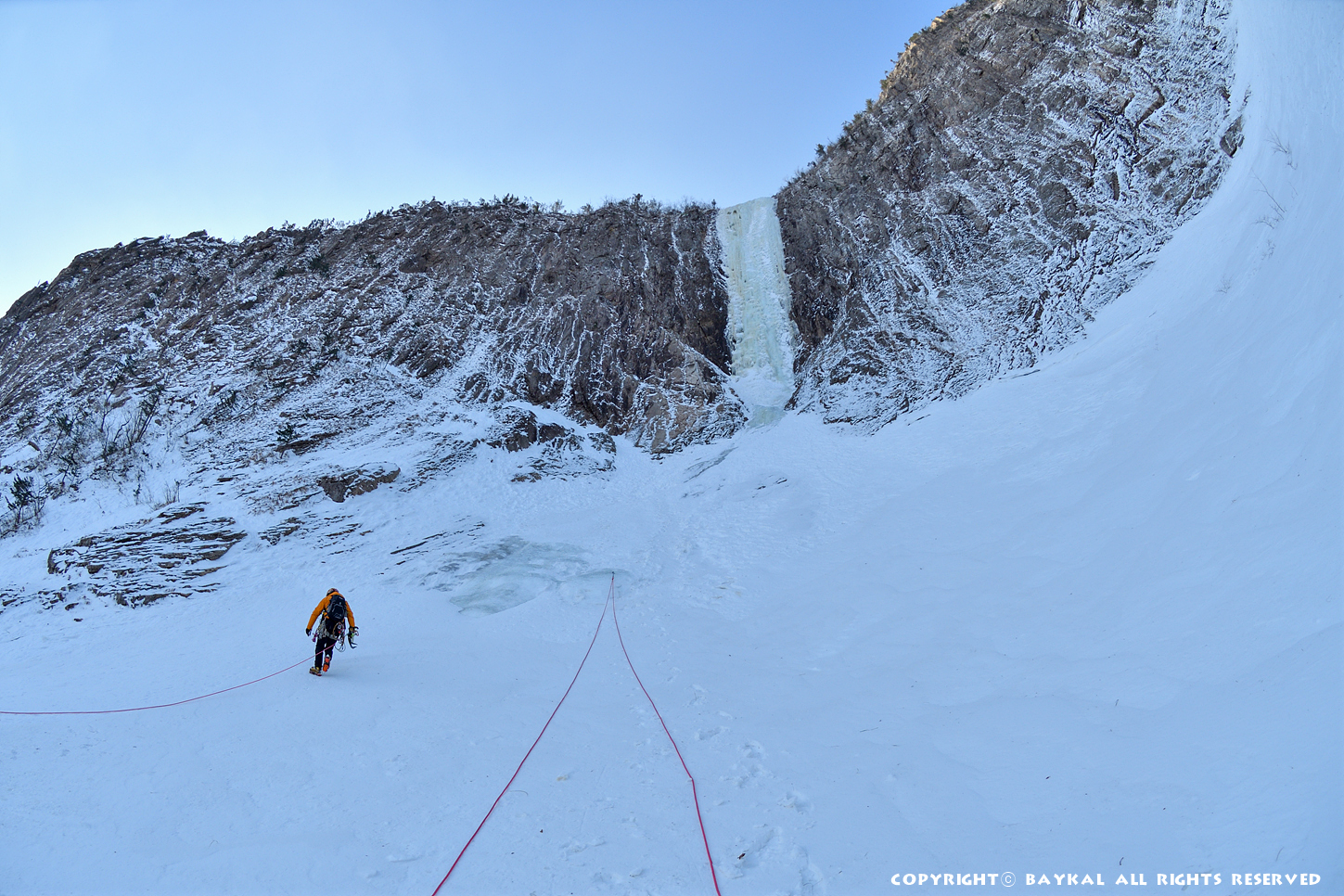 거대한 폭포 아래로 하얀설원이 펼쳐지는 곳에서 환상적인 등반을 ~ ^^