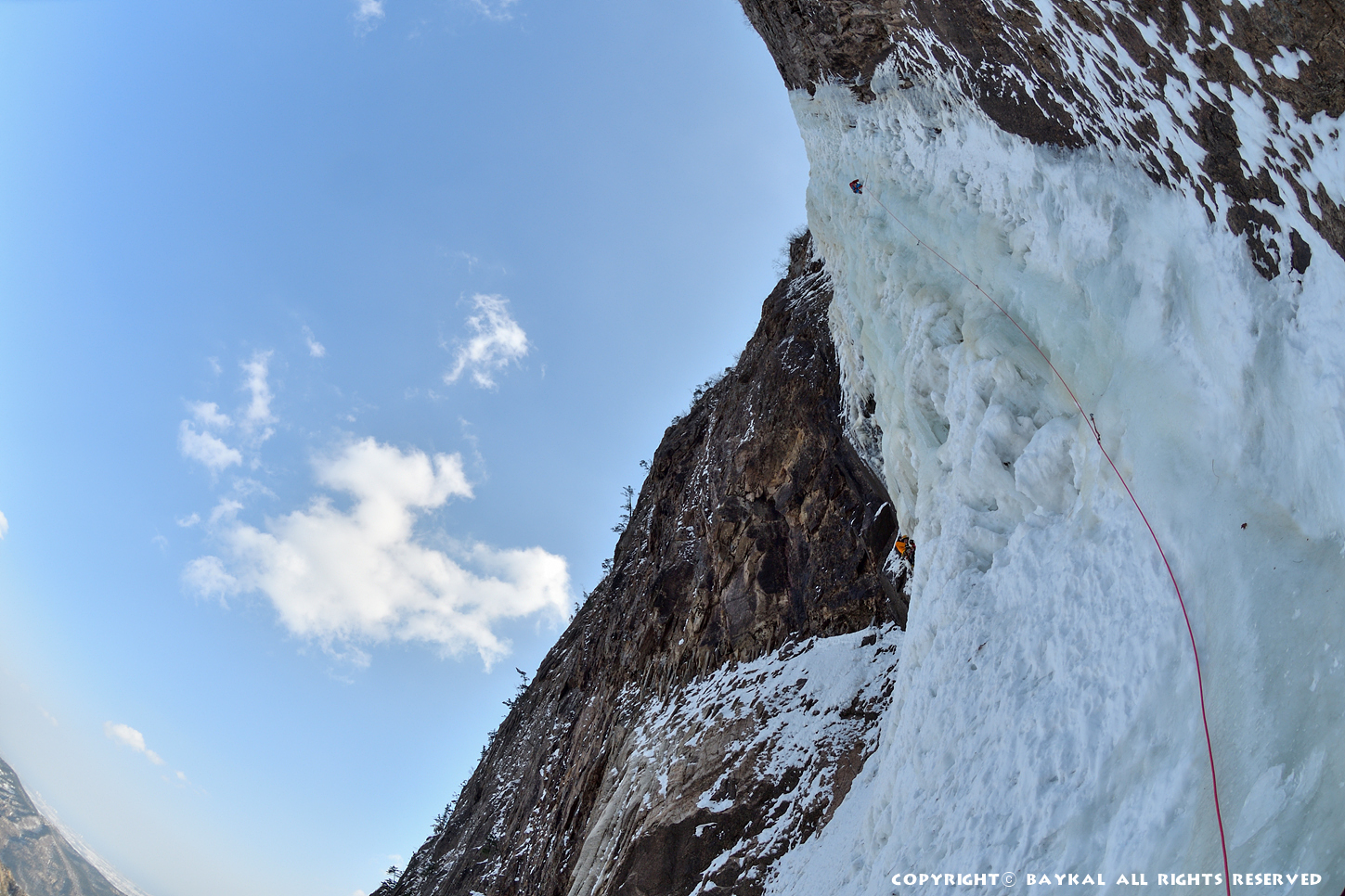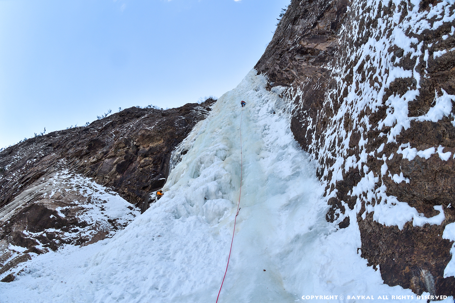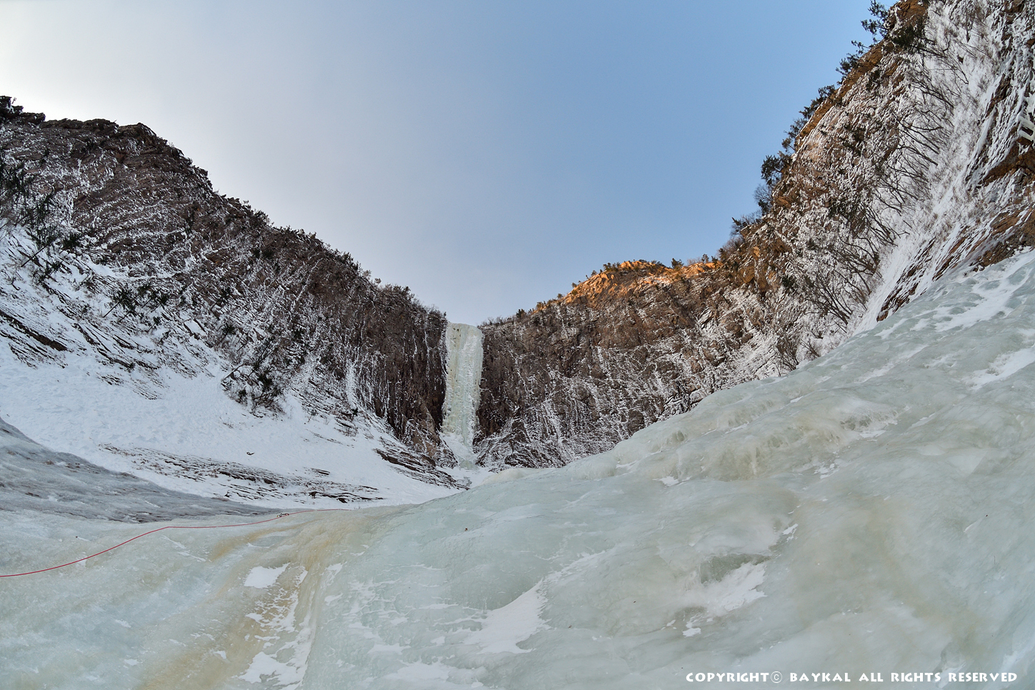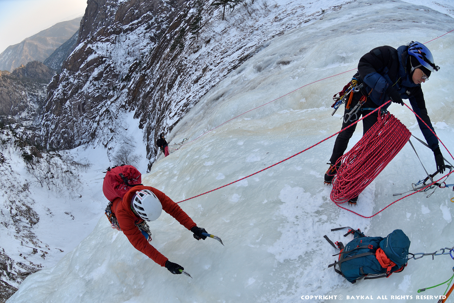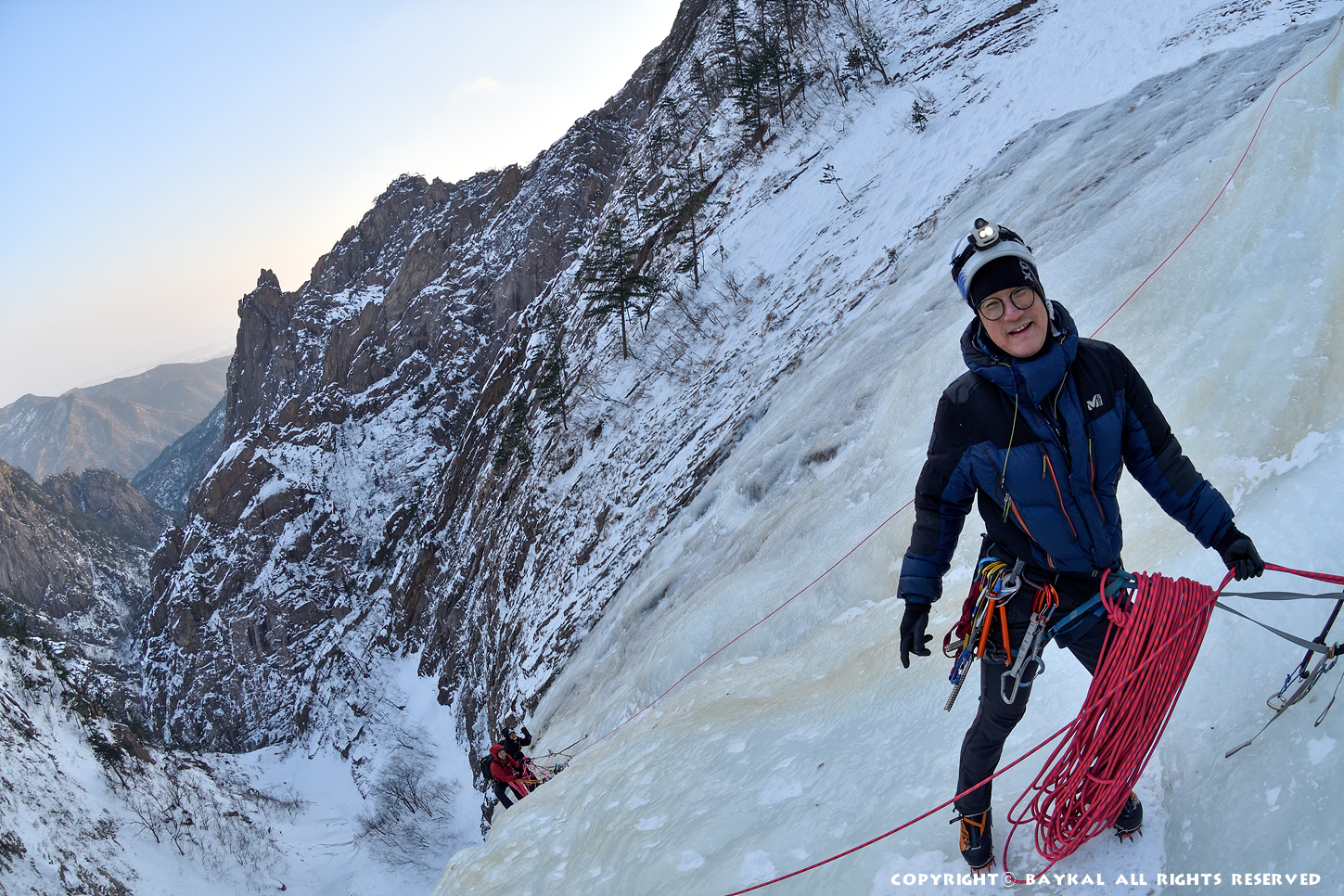 거대한 폭포 아래로 하얀설원이 펼쳐지는 곳에서 환상적인 등반을 ~ ^^