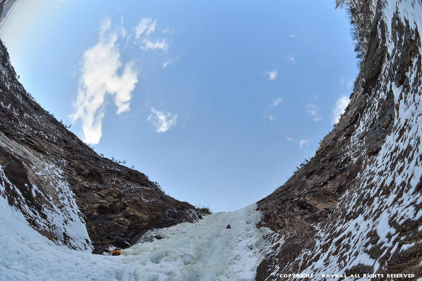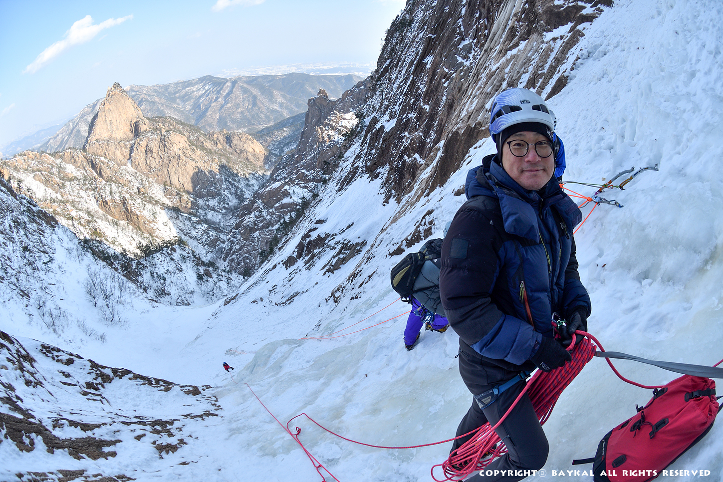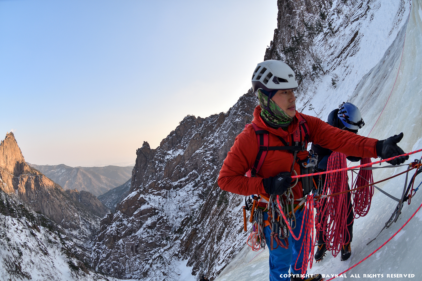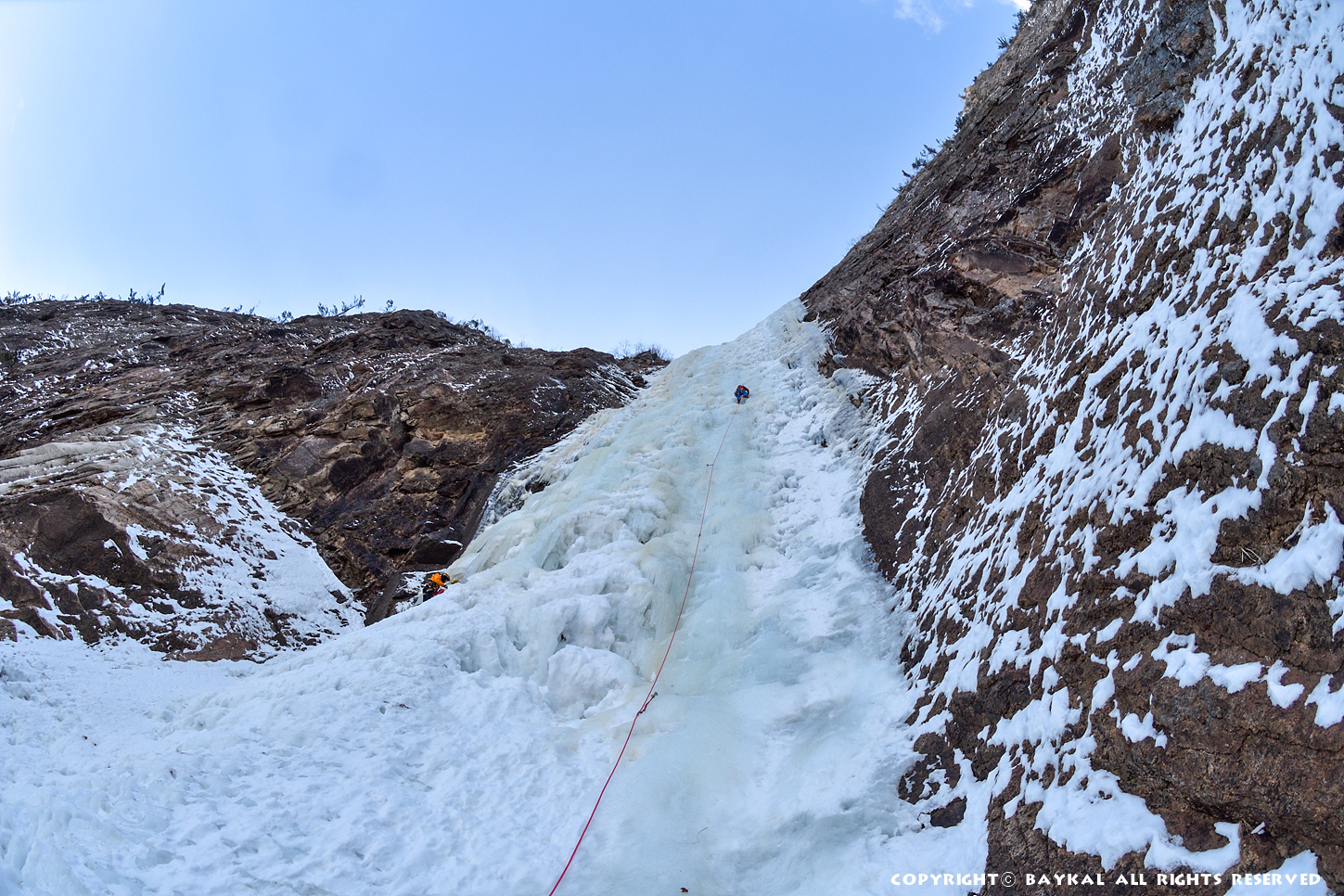 거대한 폭포 아래로 하얀설원이 펼쳐지는 곳에서 환상적인 등반을 ~ ^^