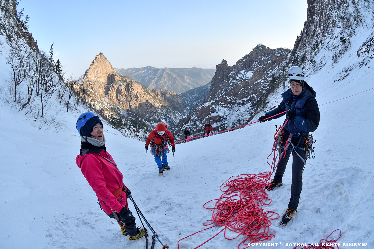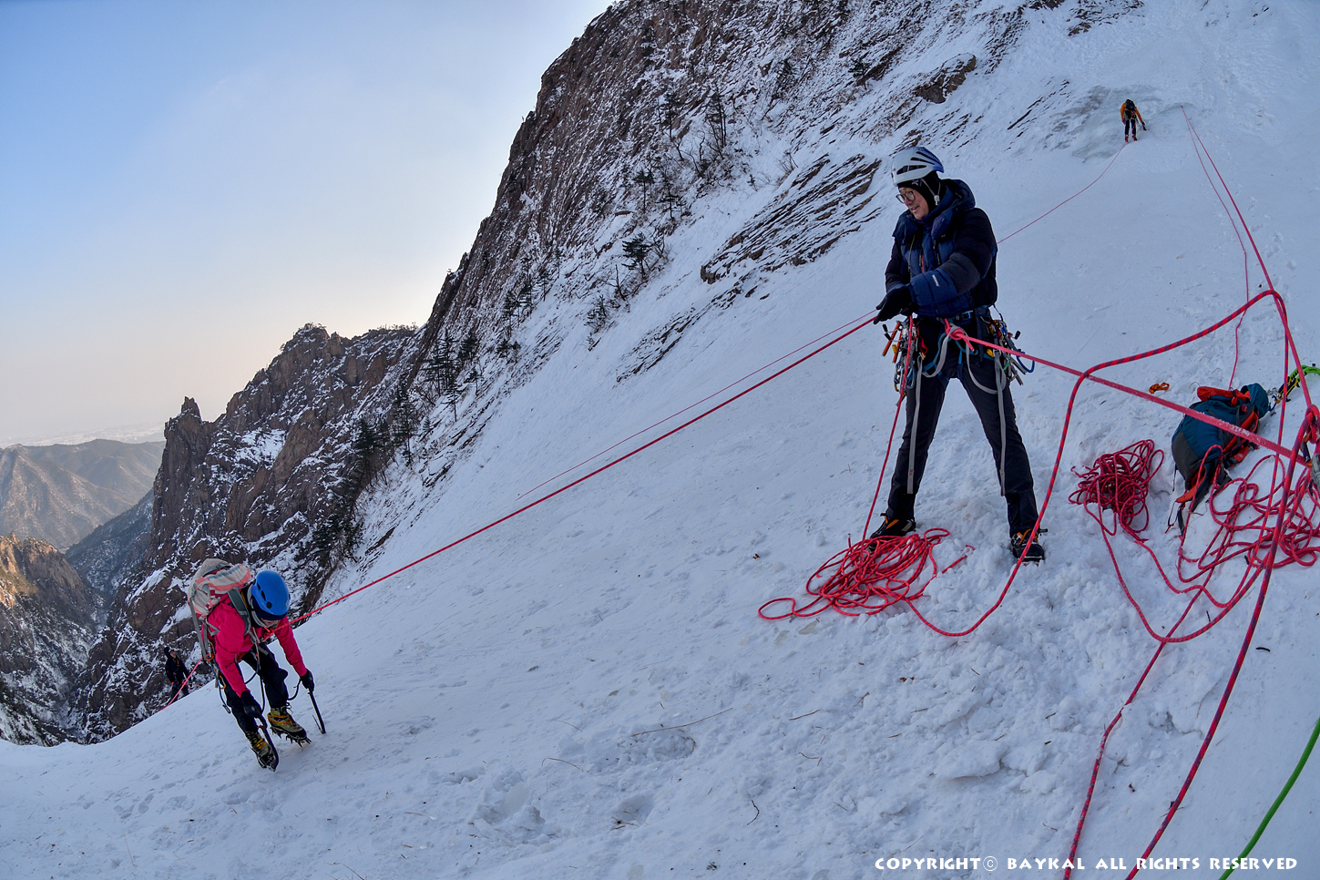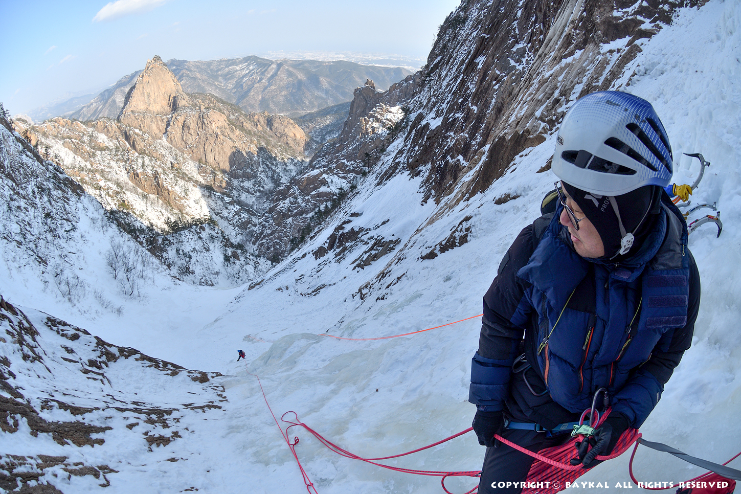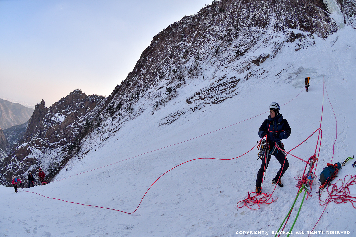 거대한 폭포 아래로 하얀설원이 펼쳐지는 곳에서 환상적인 등반을 ~ ^^