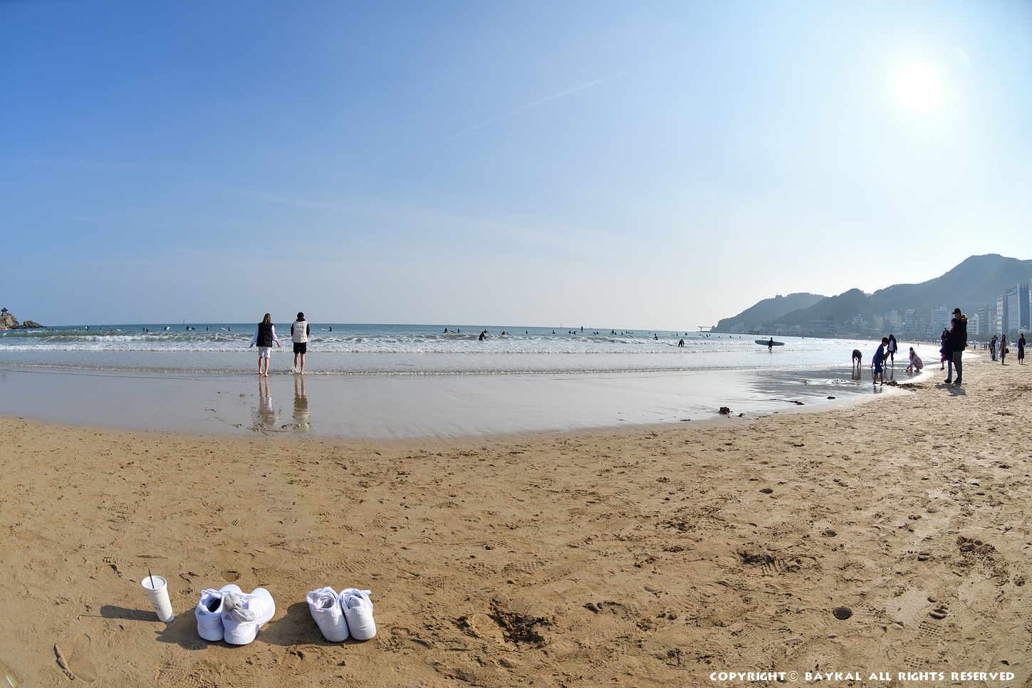 겨울 송정 해수욕장 서핑이 한창이다