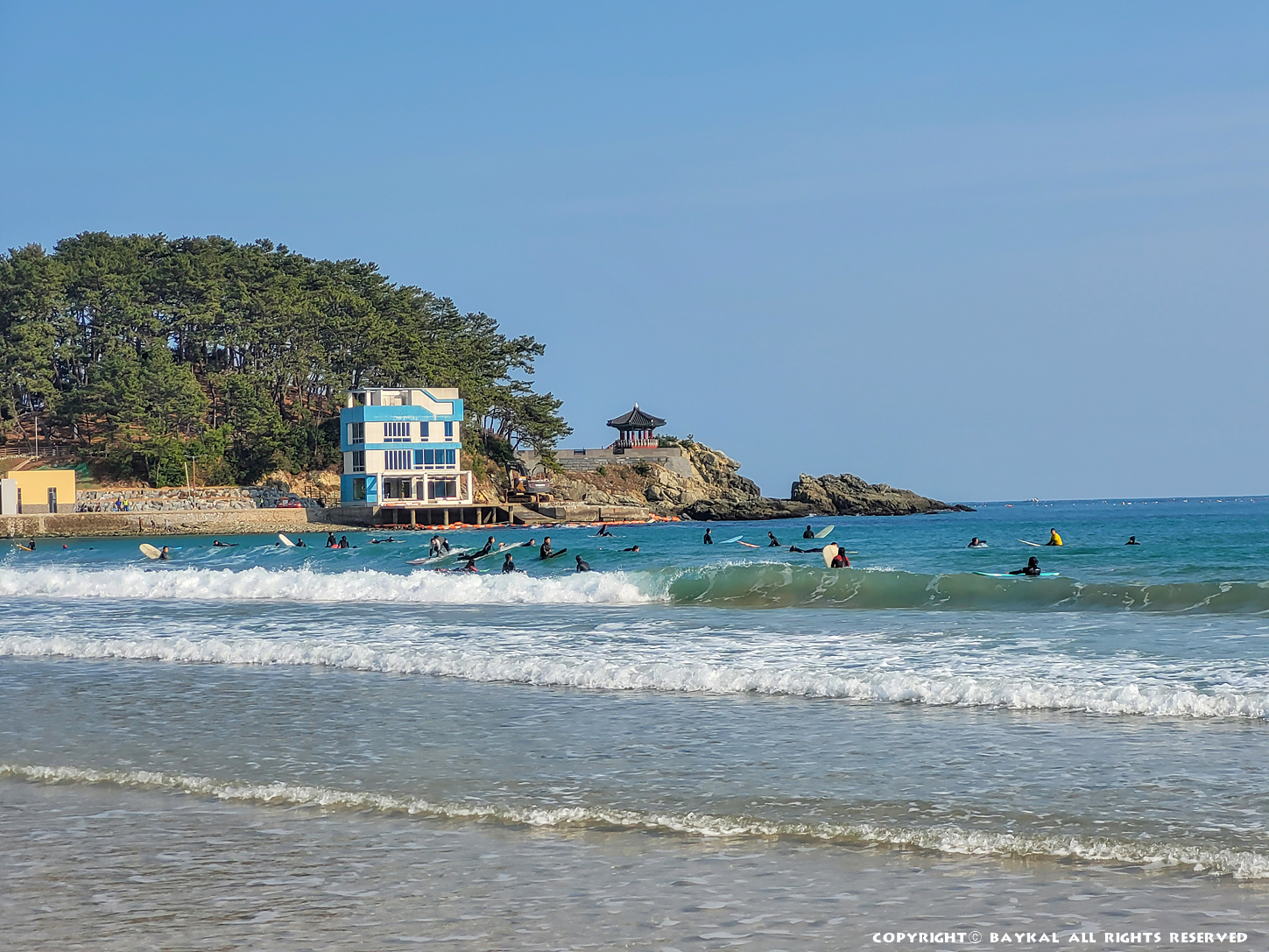 겨울 송정 해수욕장 서핑이 한창이다