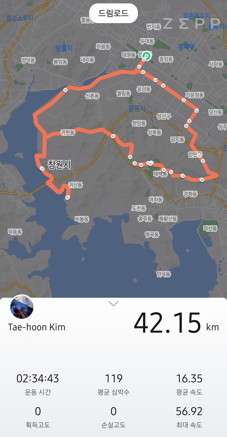 충혼탑 - 안민고개 - 장복산임도 - 귀산해안 - 충혼탑 으로 이어지는 자전거 길