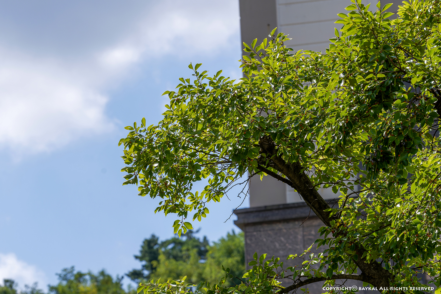 팽나무에 열매가 열려있고 잎이 아직 까지는 파릇 파릇하다~