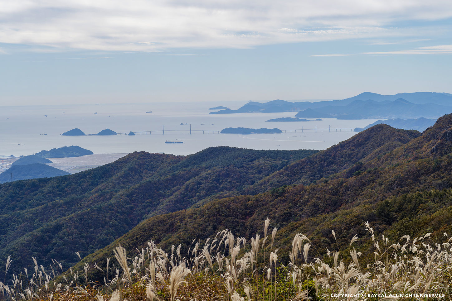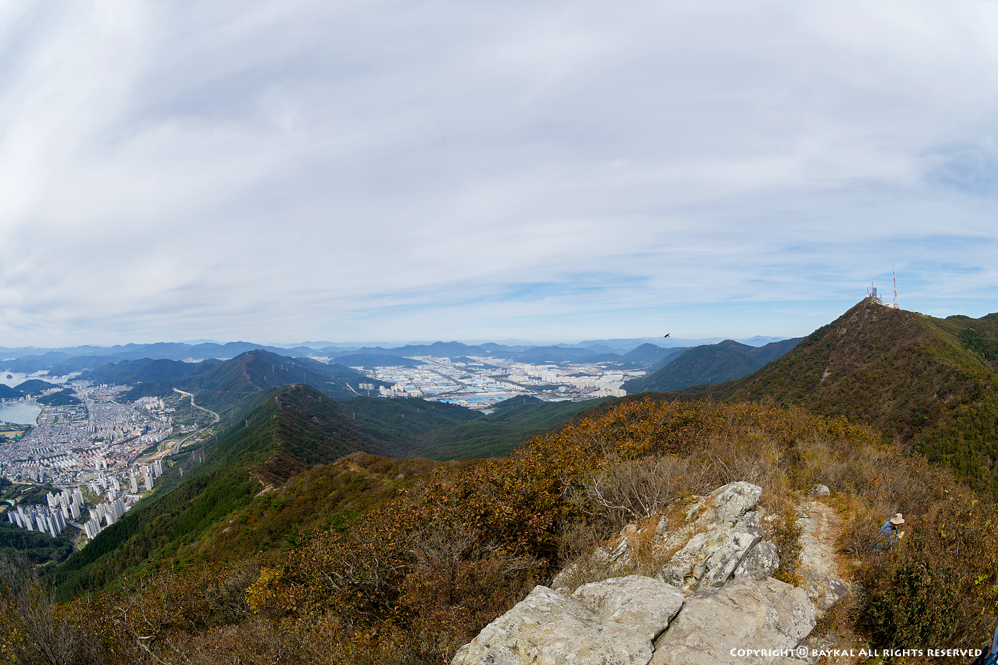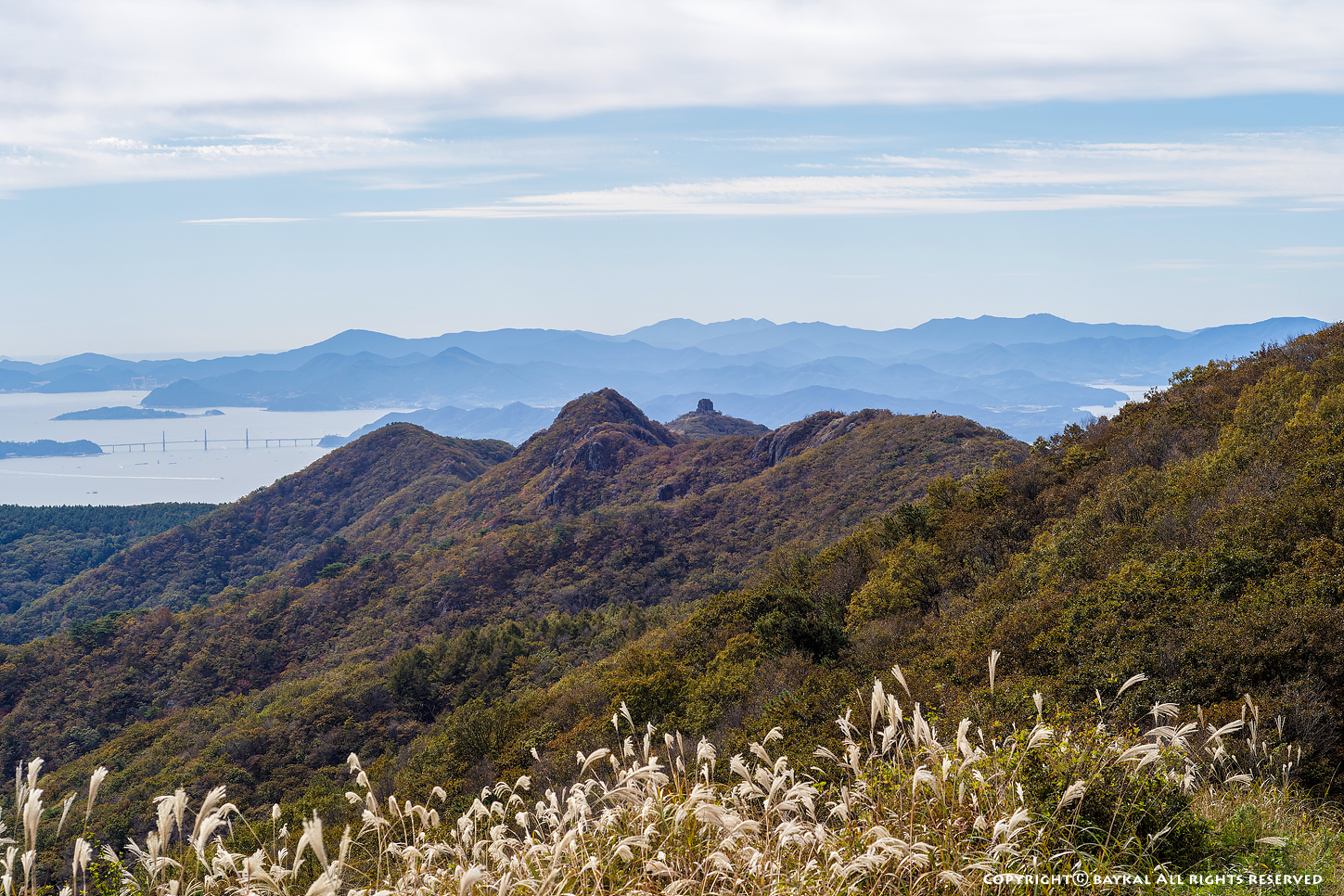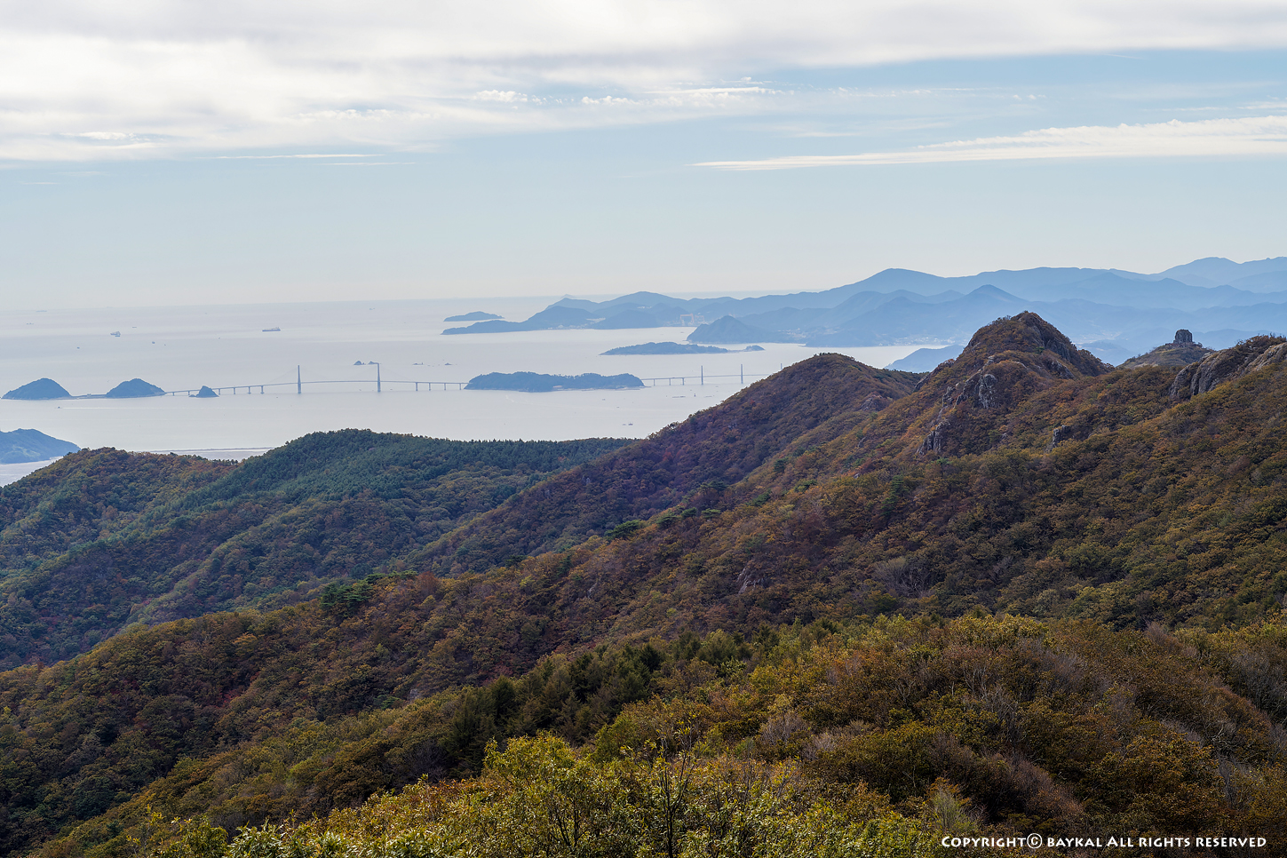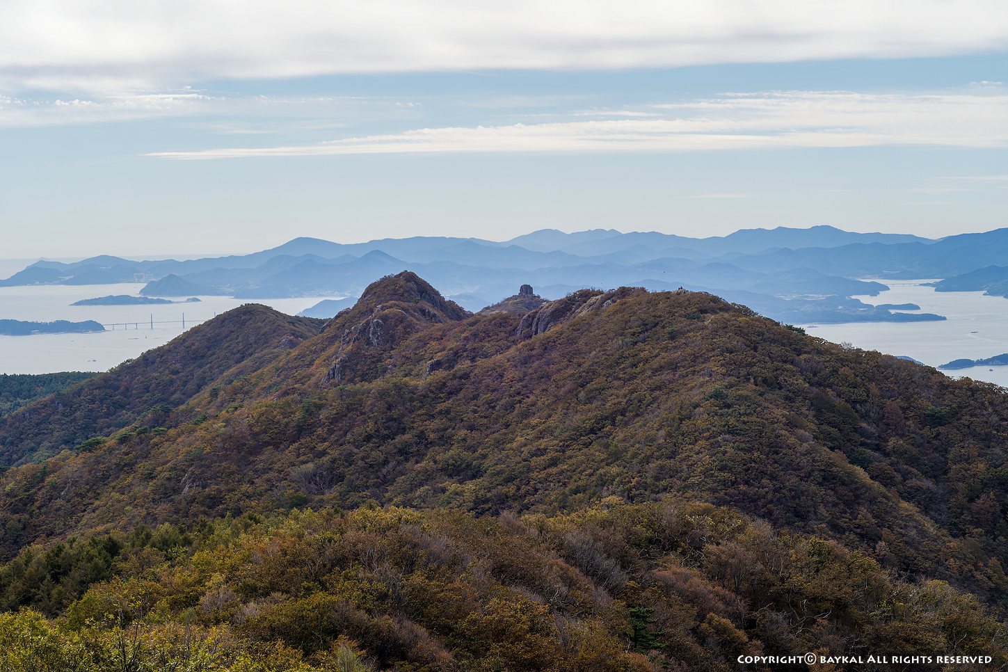 구름이 낀 날씨였지만 시정이 좋아서 지리산 천왕봉과 대마도가 보인다 ~