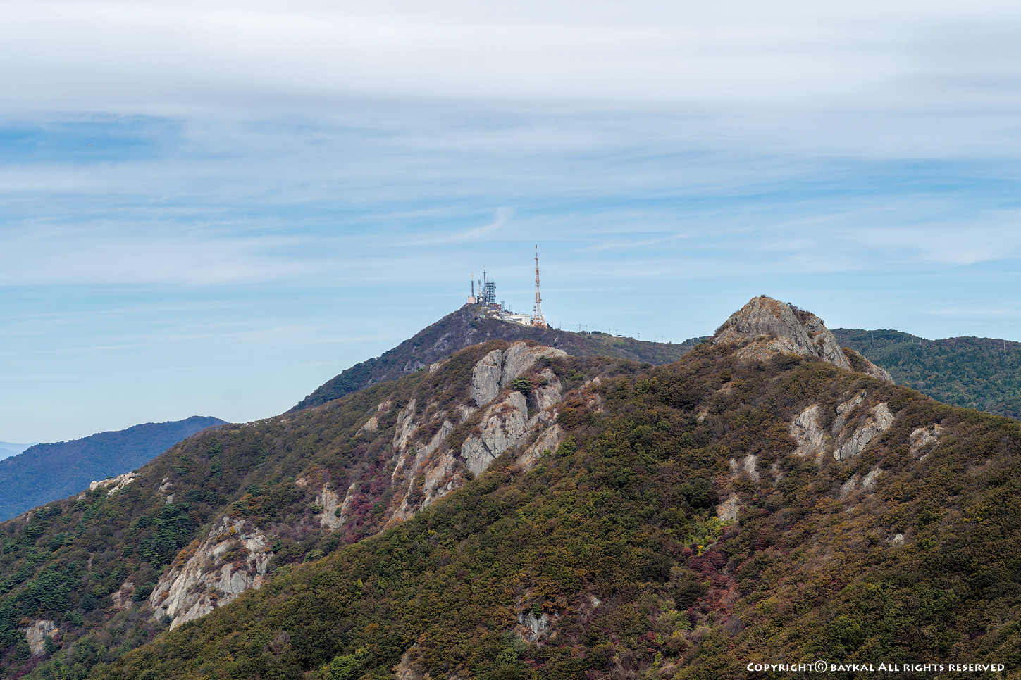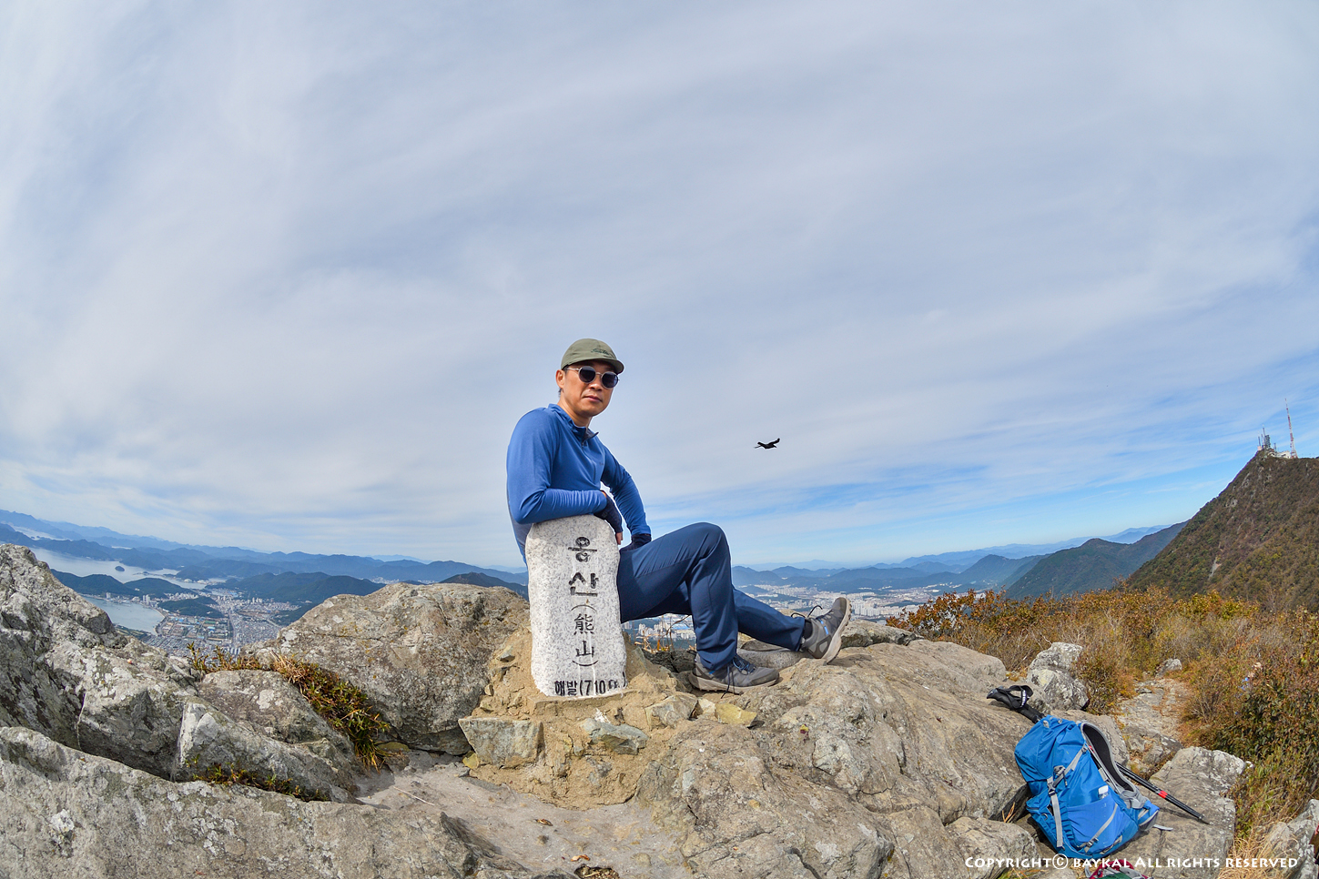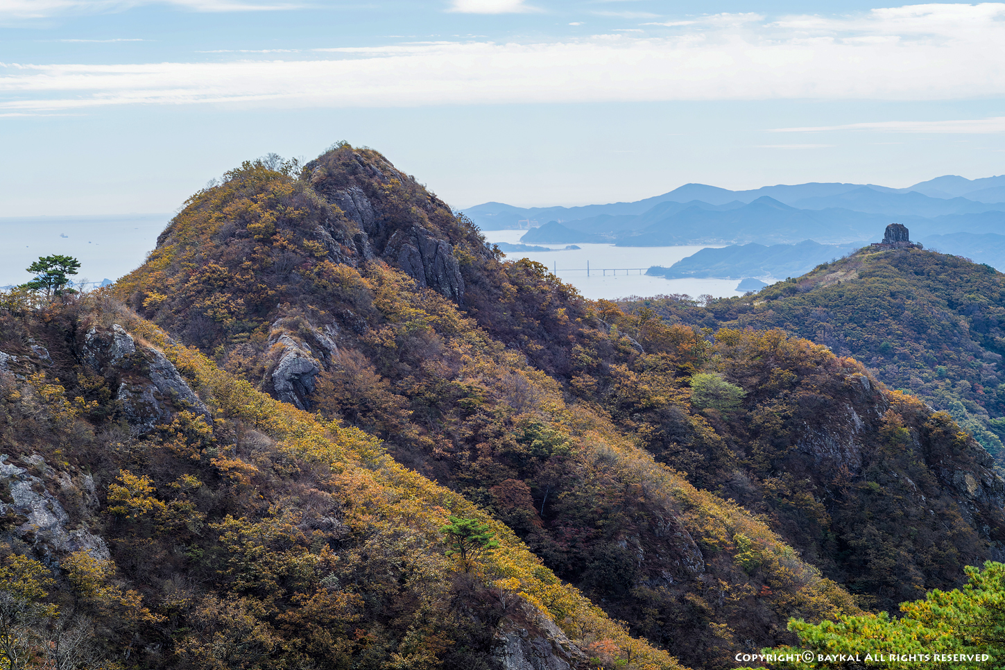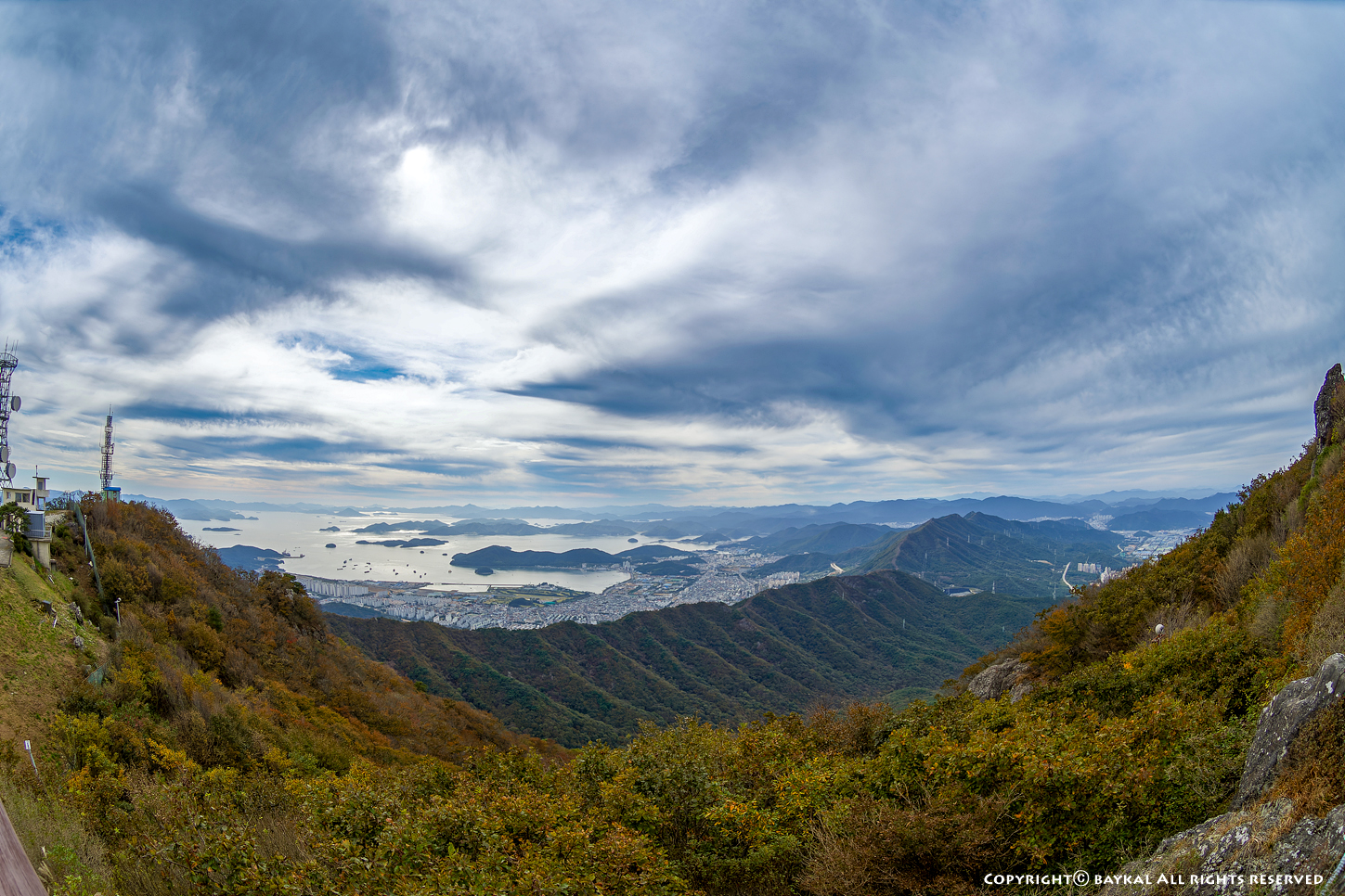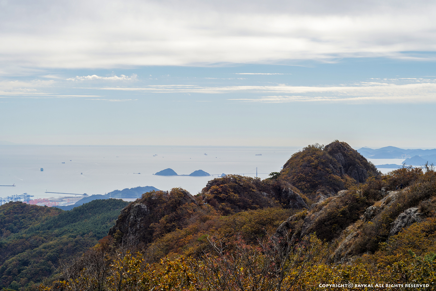 구름이 낀 날씨였지만 시정이 좋아서 지리산 천왕봉과 대마도가 보인다 ~