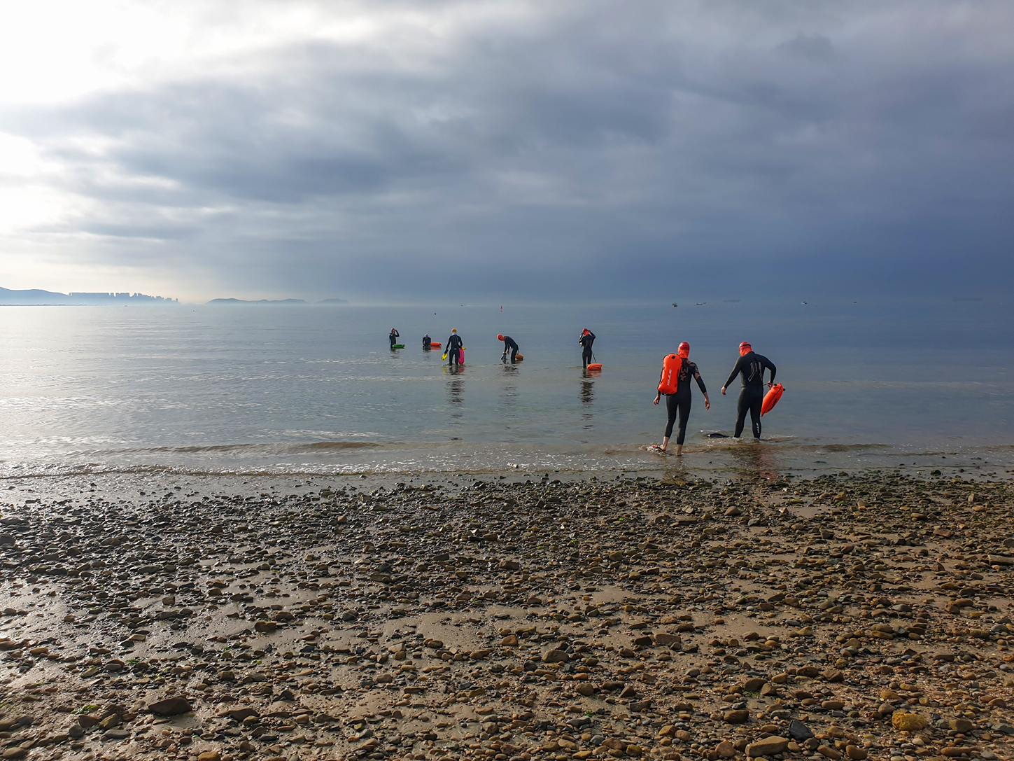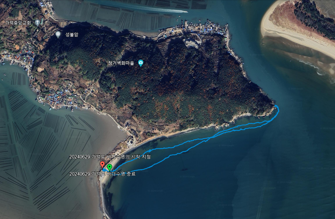 눌차 동선방조제 에서 진우도 앞 옷걸이 등대 까지 왕복 3.4km 이르는 바다 수영길 마침 간조시간 이라 바닥이 얕아서 수영 중간에 수심체크를 해보면 발이 닿는다